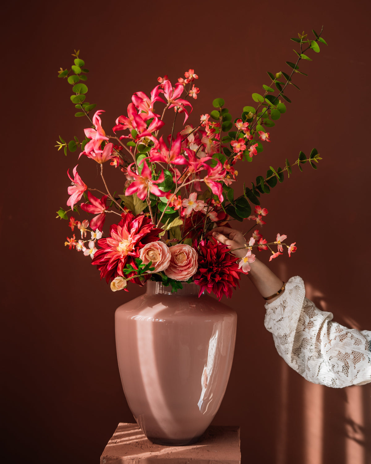 Wir bemühen uns, die Blumen und Sträuße auf unserer Website so genau wie möglich darzustellen. Bitte beachten Sie jedoch, dass es aufgrund der handgefertigten Natur der Produkte zu leichten Abweichungen in Farbe oder Größe kommen kann.